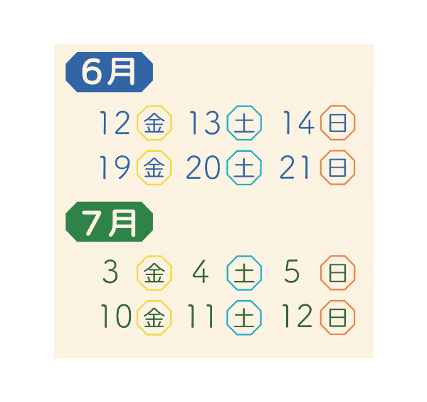 | 抽選制 | ・ご予約は抽選制になります。例年多くのお申込みを頂いているので、連続して外れる場合もあります。優遇等はできかねますのでご了承ください。 ・1度に8名までの応募が可能です。 ・例年、土曜日の申込数が多い傾向にあります。 ・申込状況の経過はお答えできません。 ・希望日3つに優先度はありません。参加可能な日にちをお選びください。 ・2日間当選することはありません。 ・当選後の日程変更はできません。 ・申込いただいた内容のコピーが「forms-receipts-noreply@google.com」というアドレスより自動送信されます。メールが確実に受信できるよう、あらかじめ受信設定を行っていただくことをおすすめいたします。