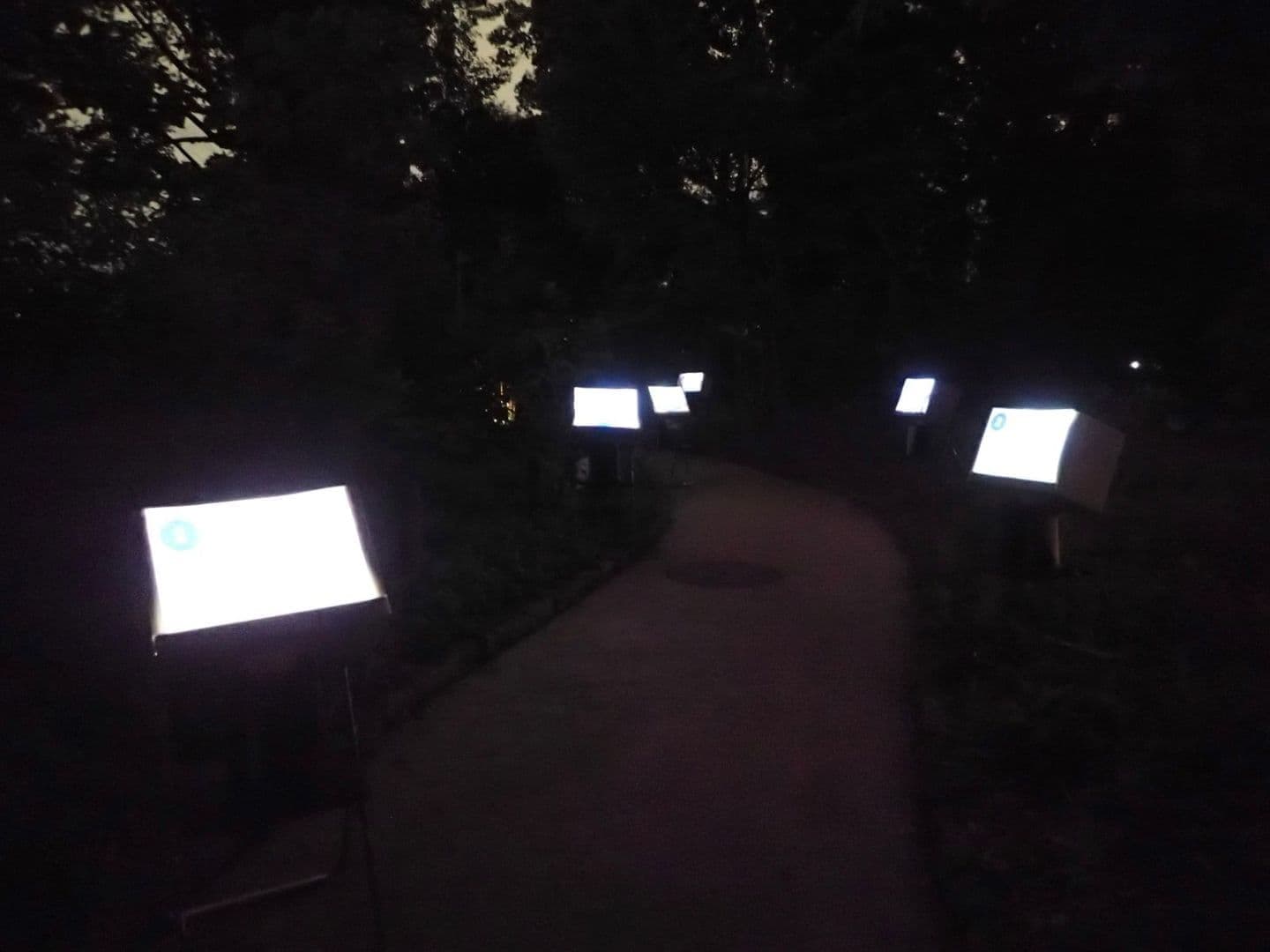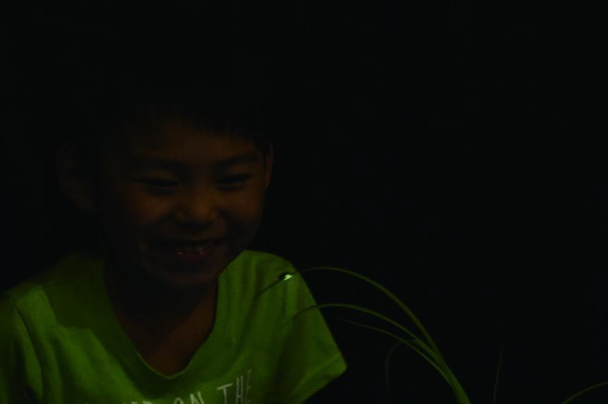 街灯を遮光し、暗闇となった園内で光るホタルをじっくりと観察してみてください。
