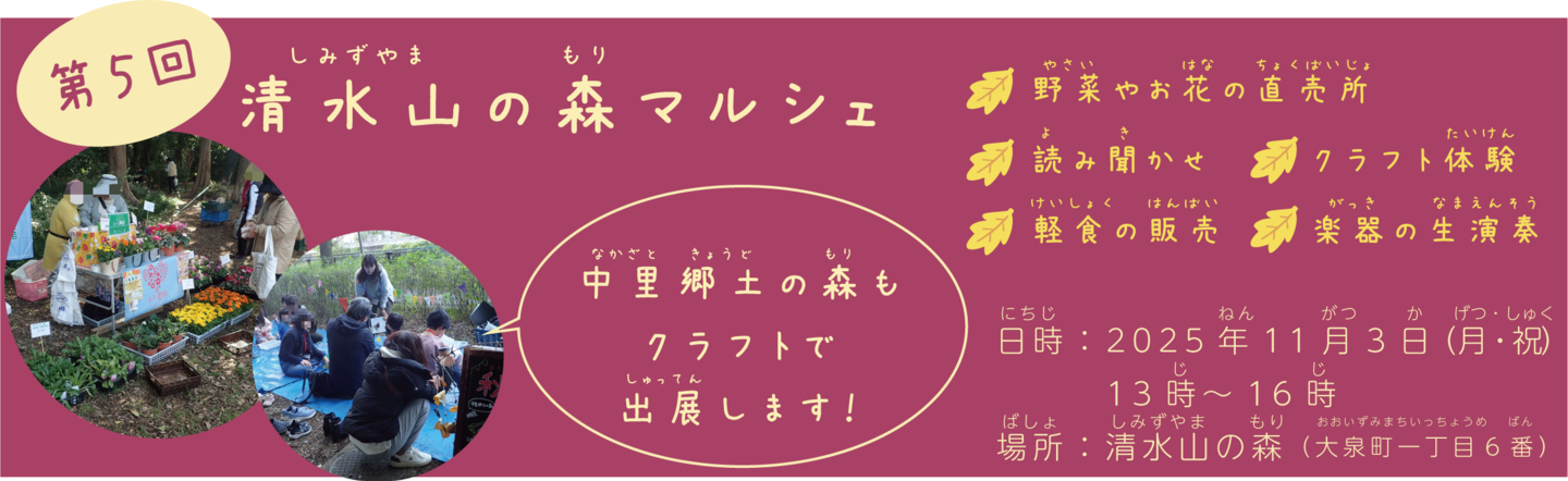 清水山の森で地域のみなさんと行うマルシェに、中里郷土の森も出展します。